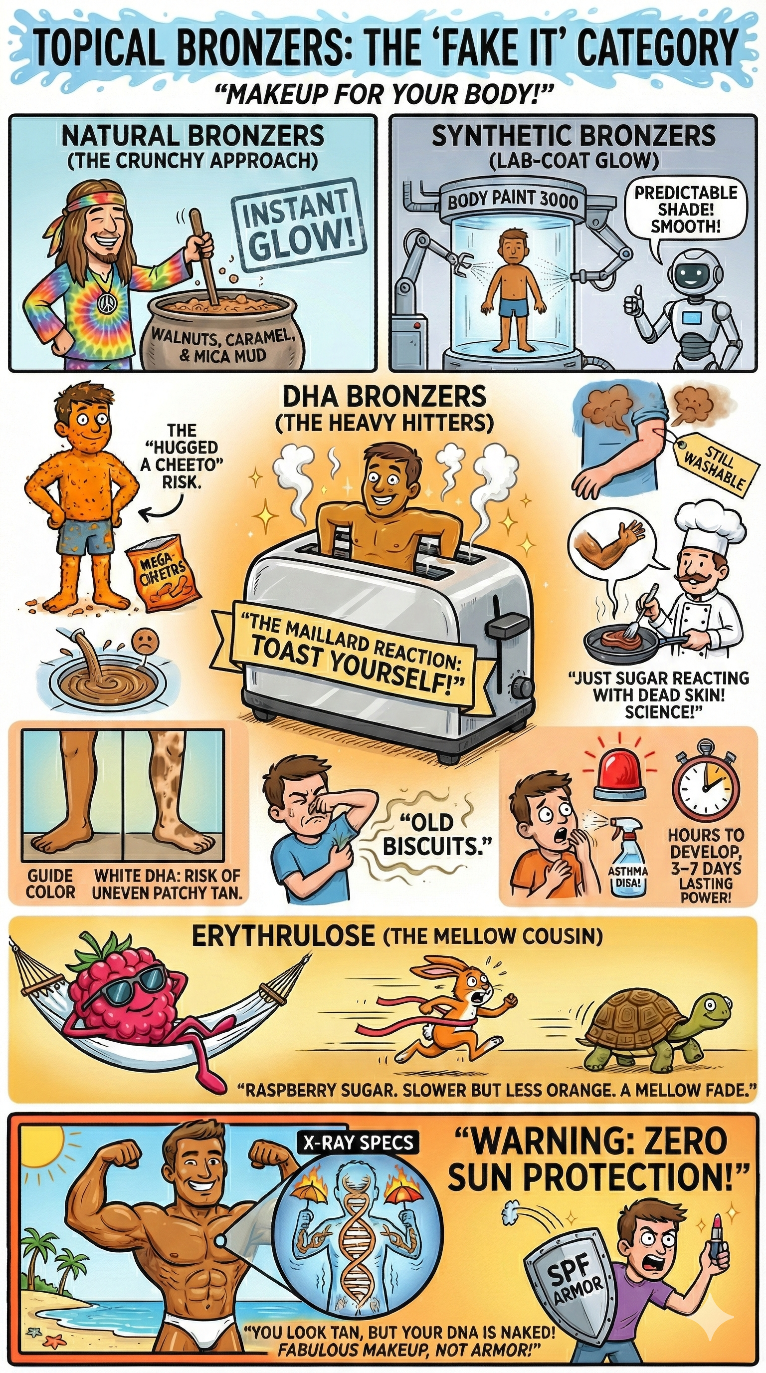 Bottom line: bronzers are a safe, effective option for a sunless tan, but remember they provide ZERO sun protection. You look tan, but your DNA is still naked. Treat them like makeup: fabulous, fun, but not armor.