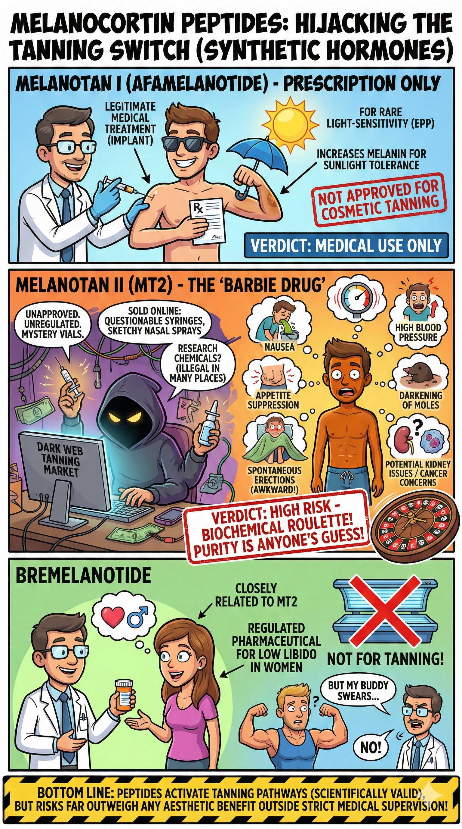 Bottom line: These peptides do activate tanning pathways, so scientifically valid. But outside strict medical supervision, their risks far outweigh any aesthetic benefit.